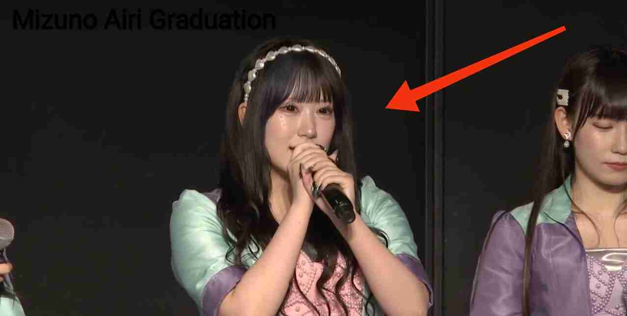 Mizuno Airi mengumumkan kelulusan dari grup secara resmi di hadapan para penggemar setianya yang menonton pertunjukan event. Di atas panggung, dirinya menyampaikan alasan terkait keputusan untuk lulus.